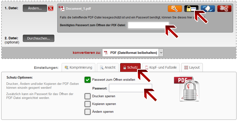 Alle Konvertierungen erfolgen online - somit wird keine Installation einer Software benötigt! Der gesamte Vorgang geschieht innerhalb kürzester Zeit und mit verständlicher Bedienoberfläche. Insgesamt werden 16 nützliche Funktionen zur Verfügung gestellt, die alle in einer einzigen Benutzeroberfläche integriert sind und daher miteinander kombiniert werden können: Konvertierung zu PDF (mehrere gleichzeitig) Datei teilen PDF entsperren Passwort ändern Ansicht anpassen pro Blatt |