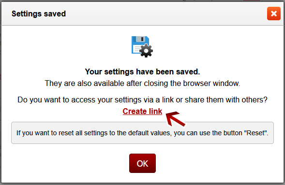 The settings of the converter can be made accessible via a link which can be shared with others or can be stored as a bookmark in the browser. This allows you to save several different settings.