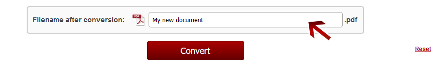Before clicking "Convert", you can set a file name for the converted file. By default, a file name is suggested which contains the name of the first selected file.